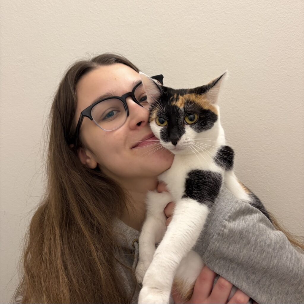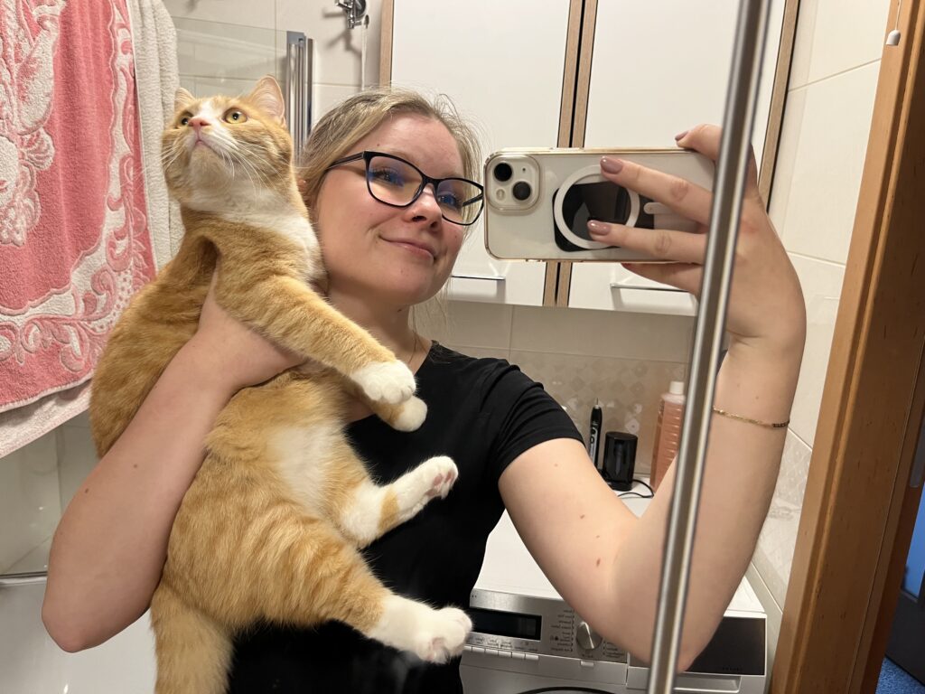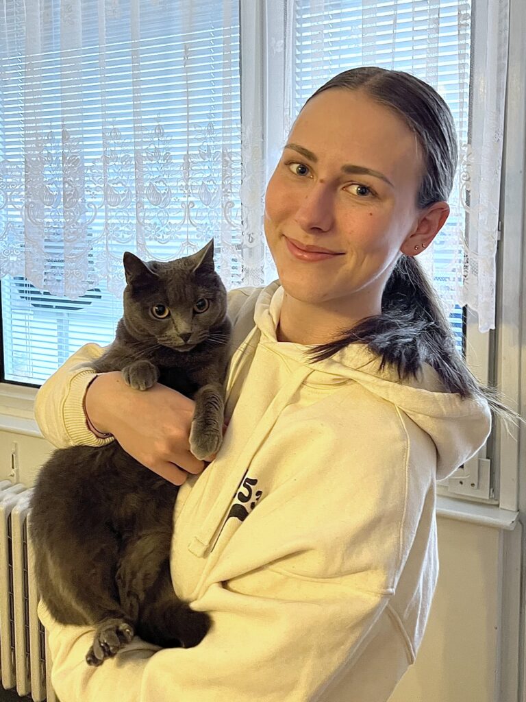 My name is Tereza, and I’m in my fourth year of studying at Masaryk University in Brno. We’ve had cats at home since I was a child. I have experience with extroverted cats, as well as those that are more shy, timid, or sick. Over the years, I’ve learned to respect cats’ boundaries and their individual personalities; I approach them with patience and love. 🙂 I’m the owner of a cat named Mian, and besides him, I also take care of some fish and about 30 houseplants. In my free time, I enjoy art, sports, and expanding my skills and knowledge; I also love spending time in nature and with friends.