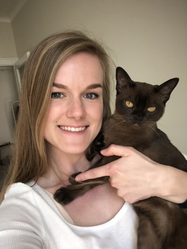 Moje rodina vždycky měla alespoň jednu kočku a během let jsem si s nimi ledacos zažila, jako například bezpečnostní kontrolu na letišti s mým kocourem nebo kočičí porod na prahu dveří našeho domu. Se svou kočkou ale i kočkami ostatních se vždycky snažím být na pozoru před možnými nebezpečími a stresory. Kromě toho si troufám říct, že jsem expert na hraní s kočkami a vybití jejich přebytečné energie, za což plně vděčím svému nezkrotnému kocourovi 🙂